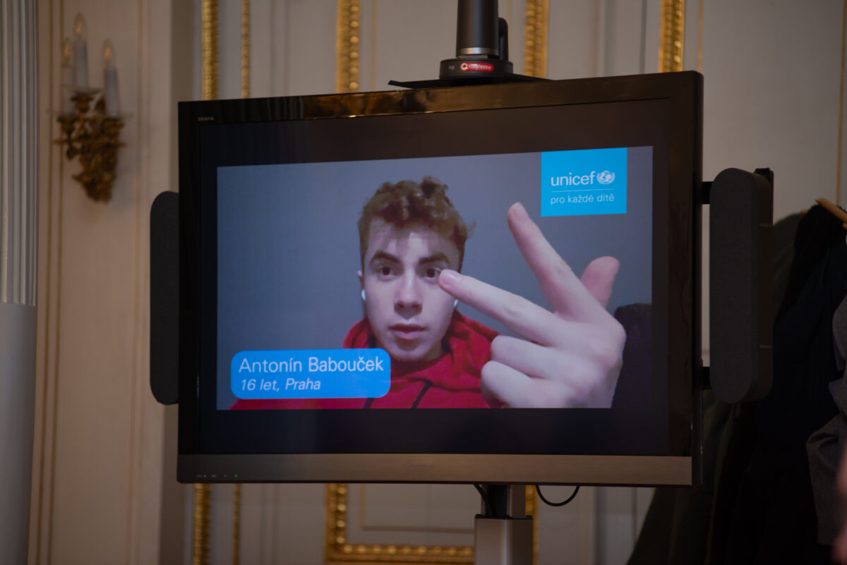 Finalisté ankety Dítě Česka 2023 Kristýna Kedrová, Matěj Pavliš, Laura Zálešáková, Victoria Lukander, Tomáš Havelka, Lukáš Pavelka, Miriam Jiroutová, Antonín Babouček a Jiří Podskalník s výkonnou ředitelkou UNICEF ČR Pavlou Gomba a ministrem školství, mládeže a tělovýchovy Mikulášem Bekem.
