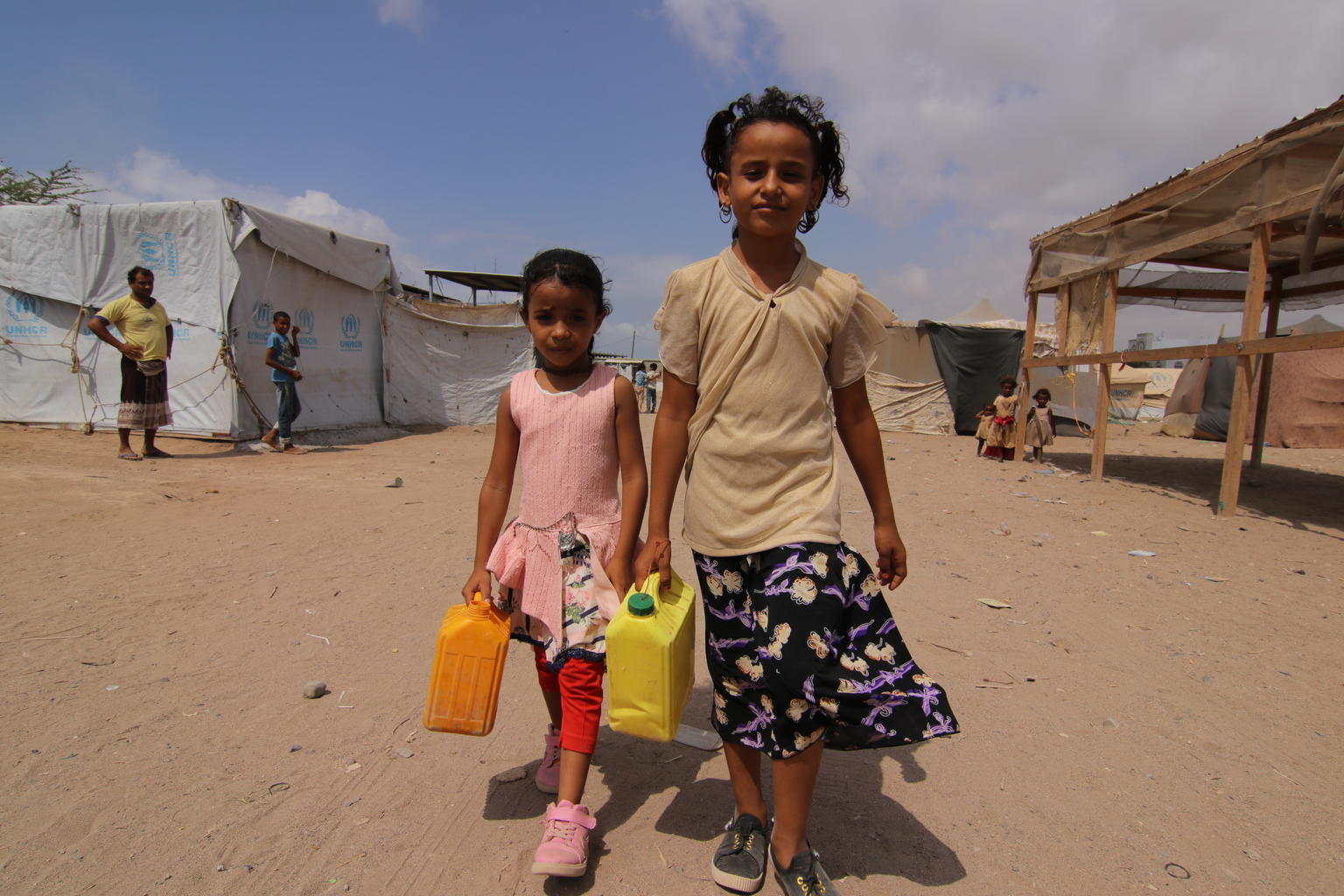 Desetiletá Muna Zayed je jednou ze dvou milionů vnitřně vysídlených dětí v Jemenu. Muna žije se svou rodinou v táboře Al Sha’ab v Adenu na jihu země od doby, kdy je probíhající boje donutily opustit domov ve městě Taiz. Její škola je uzavřena v rámci opatření proti šíření COVID-19. Každý den chodí Muna s kamarádkou k hlavní nádrži v táboře, aby přinesla čistou vodu na praní a vaření.